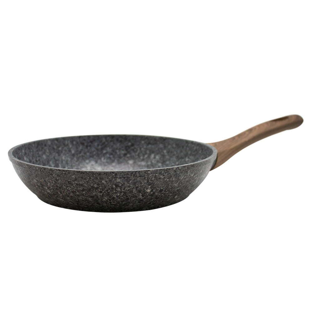 Fabricada en aluminio forjado con pintura resistente al calor, cuenta con mangos y asas de silicona "soft touch" con textura tipo madera. Su exterior e interior con textura piedra ofrece una superficie antiadherente duradera y fácil de limpiar gracias a su recubrimiento ILAG.